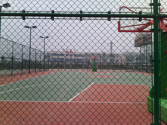 河南南洋420平米籃球場圍網按裝圖片 安平縣君隆護欄網廠